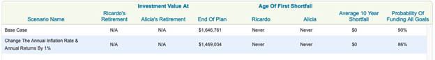 Here's a quick example. With inflation estimated to be 2.5%, an already-early-retired couple in their 50s with about $1.8 million in investments is looking at a comfortable 90% chance of funding all their goals in retirement, according to Monte Carlo. But if inflation is estimated to be a full percentage point higher, that drops to a far scarier 74%.