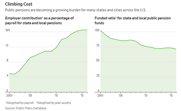 Local and state pensions lost nearly $35 billion in pension assets in the last recession. As that was happening, pension liabilities skyrocketed by over $100 billion per year. Although the stock market recovered over the past nine years, it was still not enough to close the pension gap.