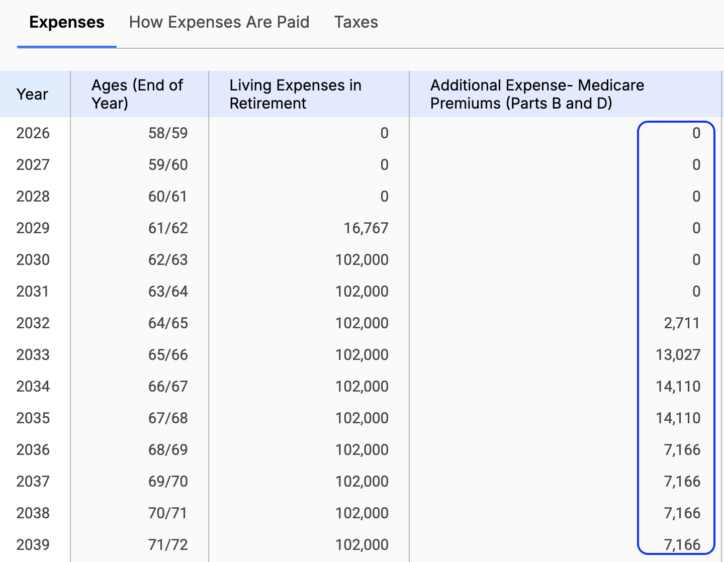 WealthTrace Planning Tip: WealthTrace will automatically calculate Medicare premiums and display them as a separate line item, making it easier to see how increases in benefits may be offset by rising healthcare costs.